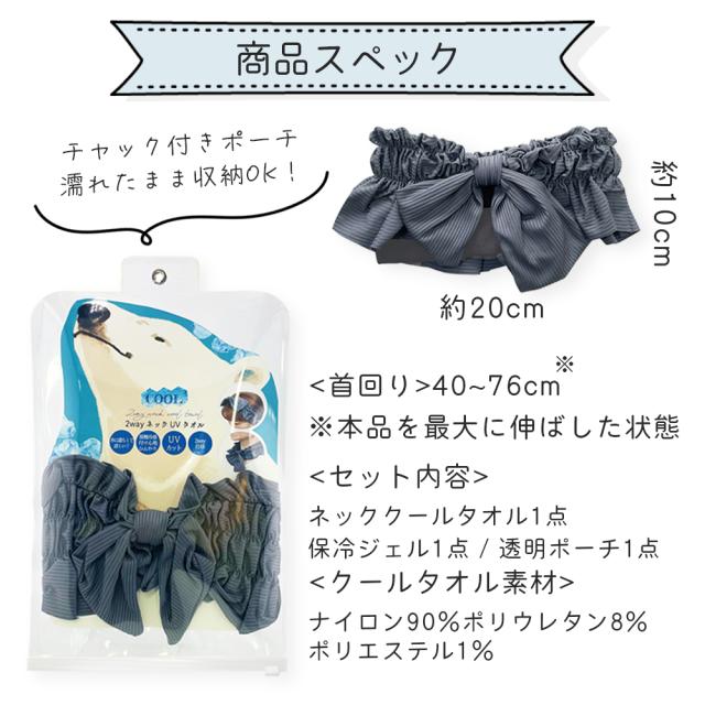 2WAY UVネッククールタオル1点、保冷ジェル1点、透明ポーチ1点