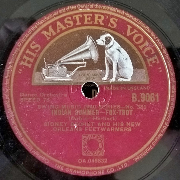 【中古】英78RPM/SP Sidney Bechet & His New Orlean Indian Summer / Preachin Blues B9061 His Masters Voice /00500
