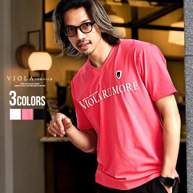 Tシャツ メンズ 半袖 ブランド おしゃれ 大きいサイズ 白T 白Tシャツ トップス カットソー インナー Vネック ラインストーン 英字 メッセージ ロゴ プリント エンブレム 綿 コットン 細身 スリム タイト フィット ストレッチ 伸縮性 ホワイト ディープピンク ブラック 白 黒 M L XL VIOLA ヴィオラ 大人 カジュアル ストリート ストリート系 韓国 韓国系 韓国ファッション 下北沢 下北系 古着 古着系 90s 90年代 2000年代 Y2K ユニセックス レディース 男女兼用 ペア 服 春 夏 春服 夏服 男性 男 父の日 父の日ギフト 父の日プレゼント 20代 30代 40代 ファッション メンズファッション 東京 プレゼント 誕生日 記念日 贈り物 ギフト配送について
