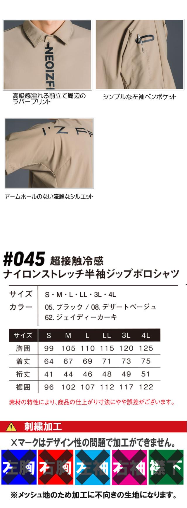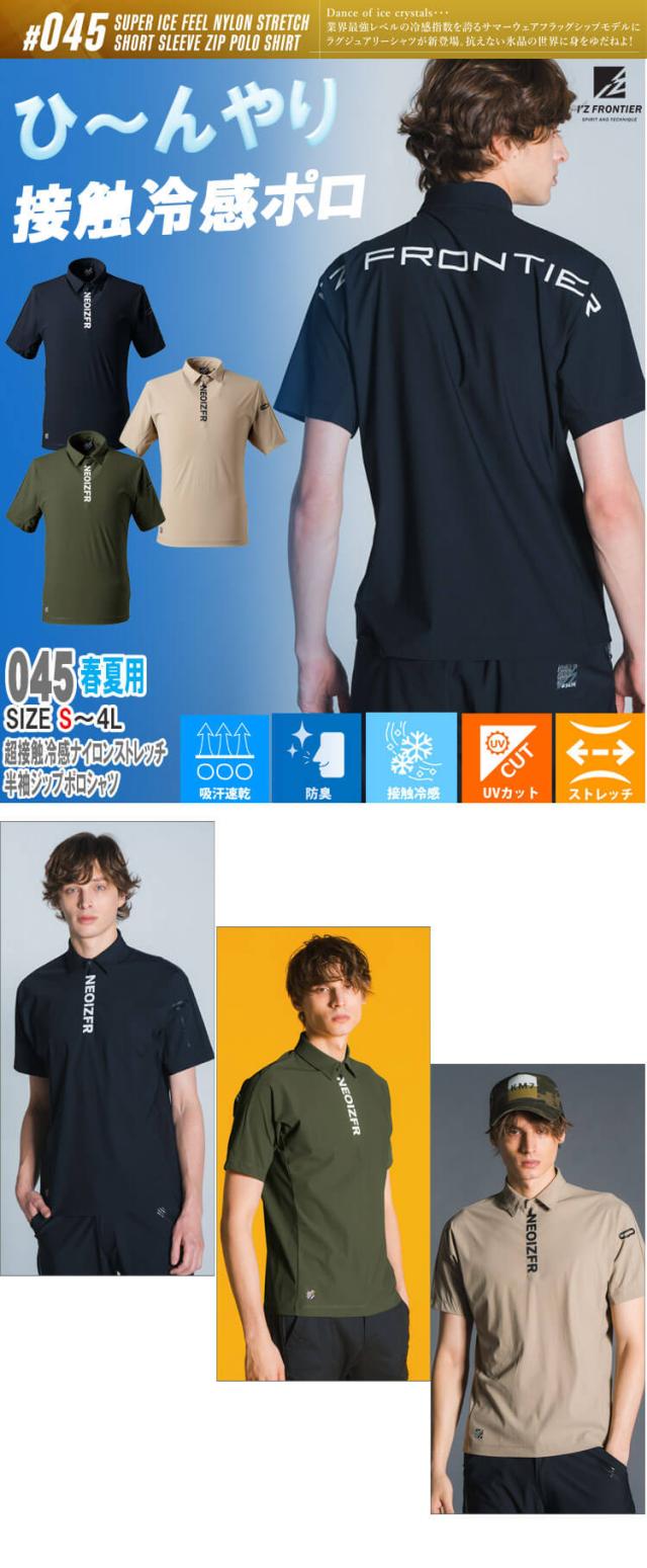 [即納]アイズフロンティア IZ FRONTIER 超接触冷感ナイロンストレッチ半袖ジップポロシャツ 045 2025年春夏新作