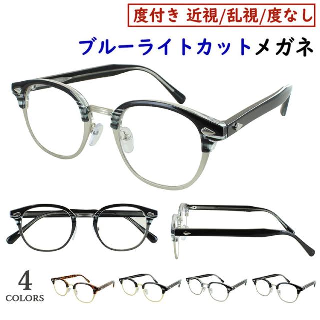 ブルーライトカット メガネ 度なし 度付き 眼鏡 PCめがね UVカット 近視対応 メンズ レディース おしゃれ ボスリントン サーモントブロー jjk1030 度入り 度あり 近視 近眼 乱視 度なし だて 伊達 透明 クリアレンズ UV400
