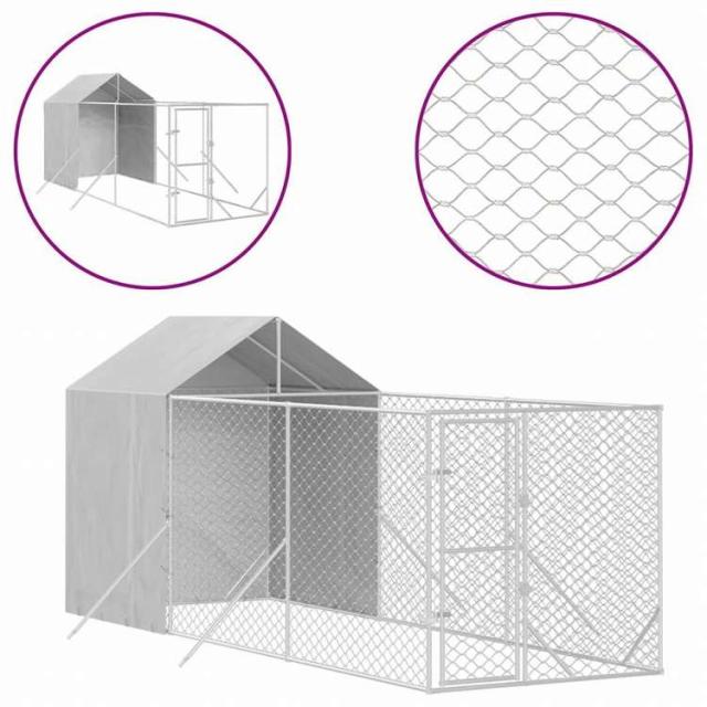 vidaXL 屋外犬小屋 屋根付き シルバー 2x6x2.5 m 亜鉛メッキ鋼製動物&ペット用品 ペット用品 犬用品 犬小屋・ドッグラン(代引不可)【送料無料】
