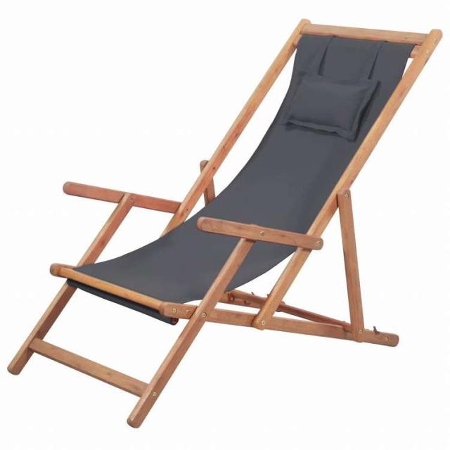 vidaXL 折りたたみ式ビーチチェア 生地&木製フレーム グレー家具 アウトドア家具 屋外椅子 アウトドアベンチチェア(代引不可)【送料無料】