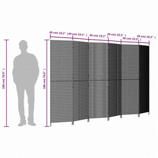 vidaXL 間仕切り 6パネル ブラック ポリラタン家具 間仕切り(代引不可)【送料無料】