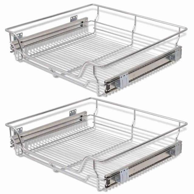 ■キッチンの収納スペースを有効活用できます。この引き出しタイプのメタルバスケットは、設置簡単で耐久性が高いのがポイント。キッチンキャビネットをさらに多目的に変身させます。 ボールベアリングを備えた伸縮自在のランナーを使用しており、開け閉めがスムーズに行なえるスライドタイプのワイヤーバスケットに仕上がりました。幅60cmのキャビネットや食器棚に適しており、最大耐荷重は1個あたり25kgです。 クロームメッキを施したスチールワイヤーを使用しているため、錆びにくく、頑丈で耐久性に優れています。取り外し可能なので、お手入れも簡単です。 組み立ては非常に簡単。お届け内容は、ワイヤーバスケット2点、ランナー2組、取り付け用部品です。