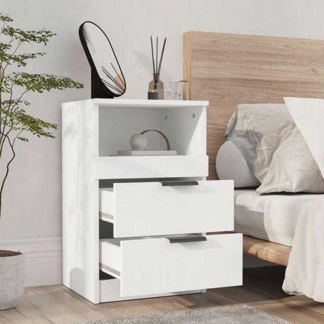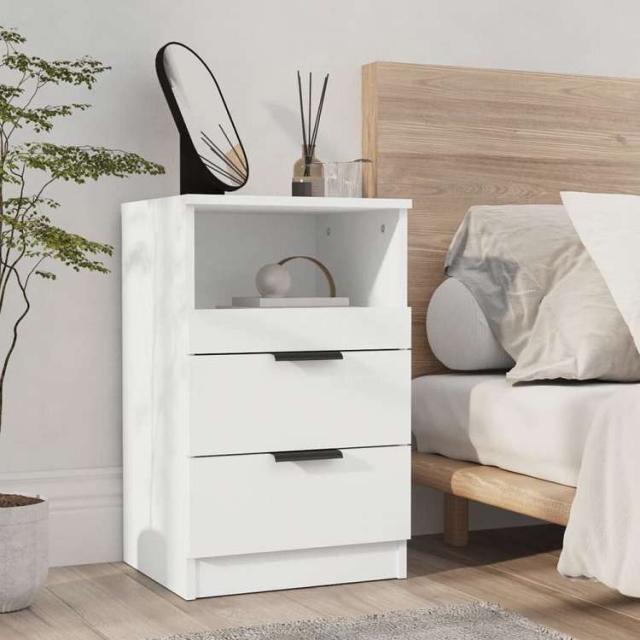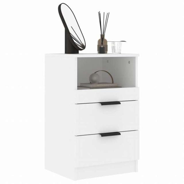 vidaXL ベッドサイドキャビネット ホワイト エンジニアリングウッド家具 テーブル ベッドサイドテーブル(代引不可)【送料無料】