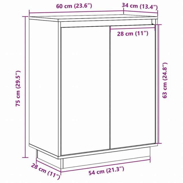 vidaXL サイドボード 60x34x75 cm パイン無垢材家具 キャビネット&収納 サイドボード(代引不可)【送料無料】