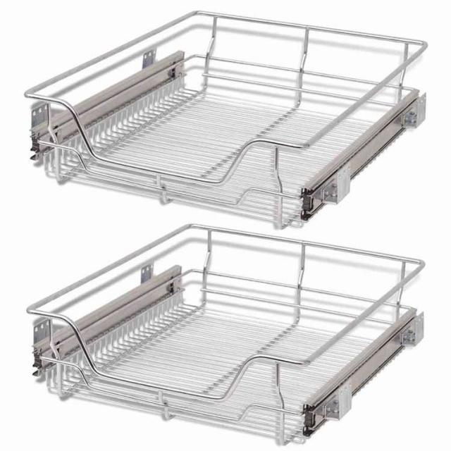 vidaXL 引き出し式 ワイヤーバスケット 2点 シルバー 500 mmホーム&ガーデン キッチン&ダイニング キッチンツール&調理器具 キッチン収納 調理道具ホルダー・ラック(代引不可)【送料無料】
