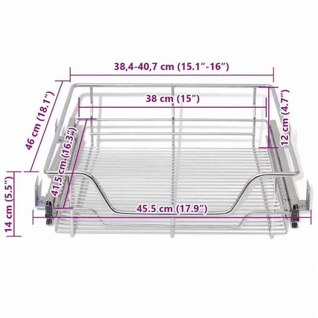 ■キッチンの収納スペースを有効活用できます。この引き出しタイプのメタルバスケットは、設置簡単で耐久性が高いのがポイント。キッチンキャビネットをさらに多目的に変身させます。 ボールベアリングを備えた伸縮自在のランナーを使用しており、開け閉めがスムーズに行なえるスライドタイプのワイヤーバスケットに仕上がりました。幅50cmのキャビネットや食器棚に適しており、最大耐荷重は1個あたり25kgです。 クロームメッキを施したスチールワイヤーを使用しているため、錆びにくく、頑丈で耐久性に優れています。取り外し可能なので、お手入れも簡単です。 組み立ては非常に簡単。お届け内容は、ワイヤーバスケット2点、ランナー2組、取り付け用部品です。
