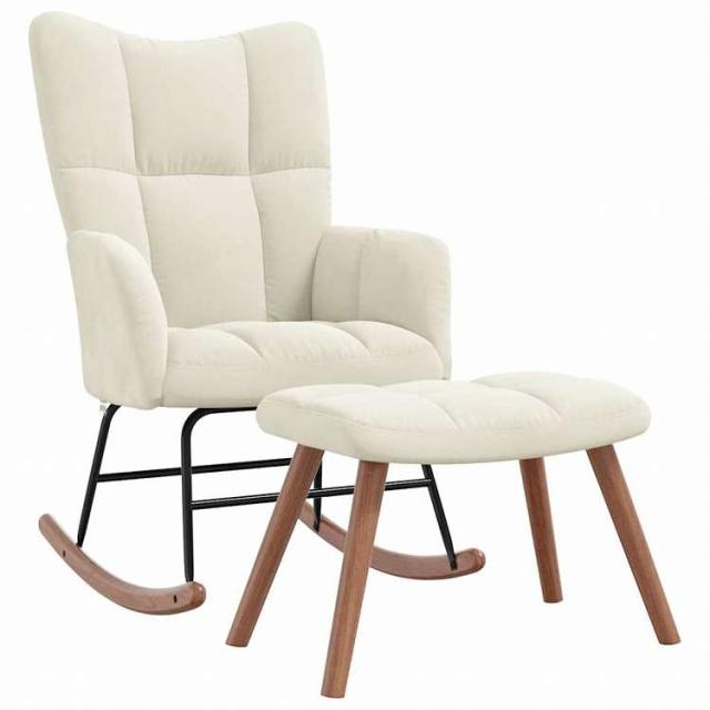 vidaXL ロッキングチェア スツール付 クリームホワイト ベルベット家具 チェア ロッキングチェア(代引不可)【送料無料】