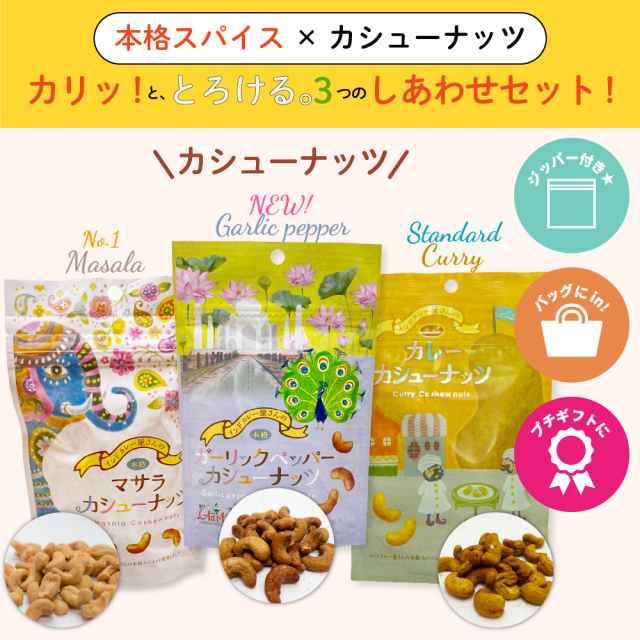 ■商品名:カシューナッツ3種セット(カレー&マサラ&ガーリック)