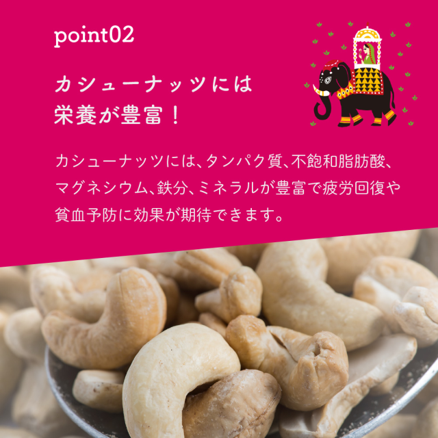 [ガーリックカシューナッツ]カシューナッツ(ベトナム)、ミックススパイス、植物油、ミックススパイス(小麦を含む)、植物油脂、ガーリックパウダー、ブラックペッパー、岩塩、食塩、バター