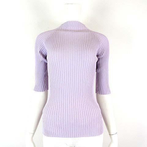 【中古】ラシュエット LA CHOUETTE サマー リブ ニット トップス ハイネック 5分袖 半袖 M ラベンダー レディース