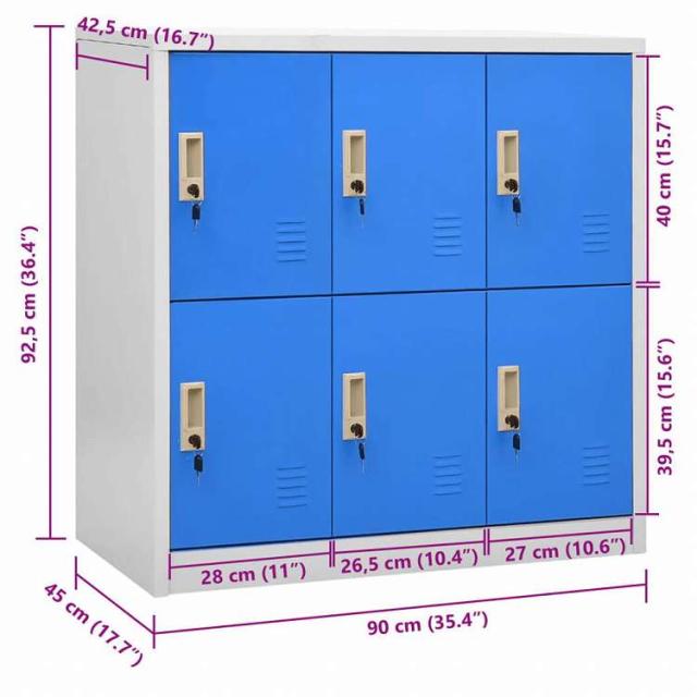 vidaXL ロッカーキャビネット ライトグレー&ブルー 90x45x92.5cm スチール家具 キャビネット&収納 収納キャビネット・ロッカー(代引不可)【送料無料】