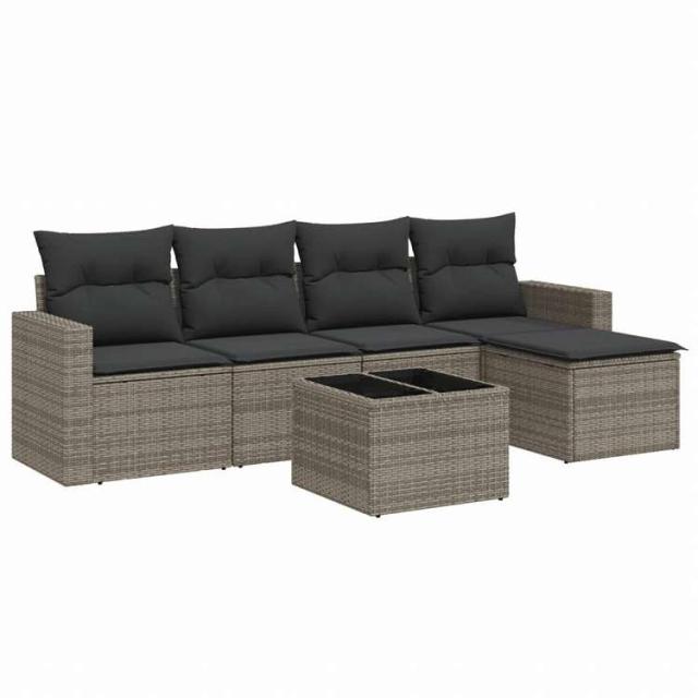 vidaXL ガーデンソファ6点セット クッション付き グレー ポリラタン製家具 アウトドア家具 屋外椅子 屋外用組み合わせソファセット(代引不可)【送料無料】
