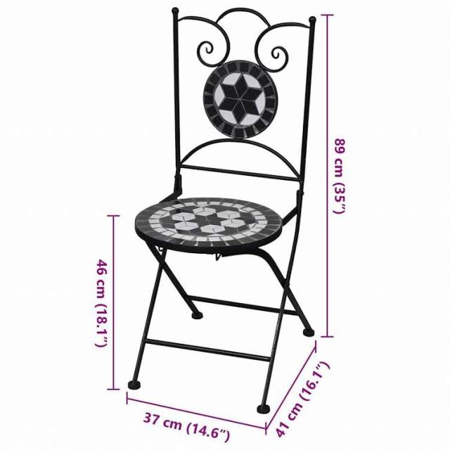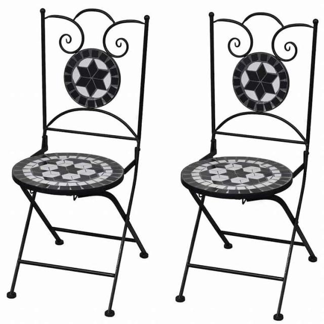 vidaXL 折りたたみ式ビストロチェア 2点 セラミック ブラック&ホワイト家具 アウトドア家具 屋外椅子 アウトドアベンチチェア(代引不可)【送料無料】