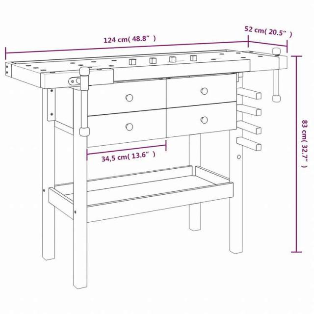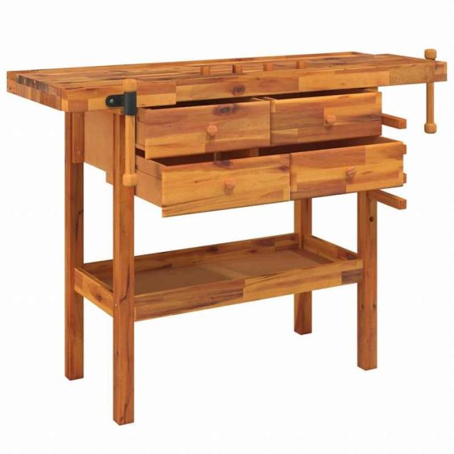 vidaXL 作業台 引き出し&バイス付き 124x52x83 cm アカシア無垢材ハードウェア ハードウェアアクセサリ 工具収納・整理整頓 ワークベンチ(代引不可)【送料無料】
