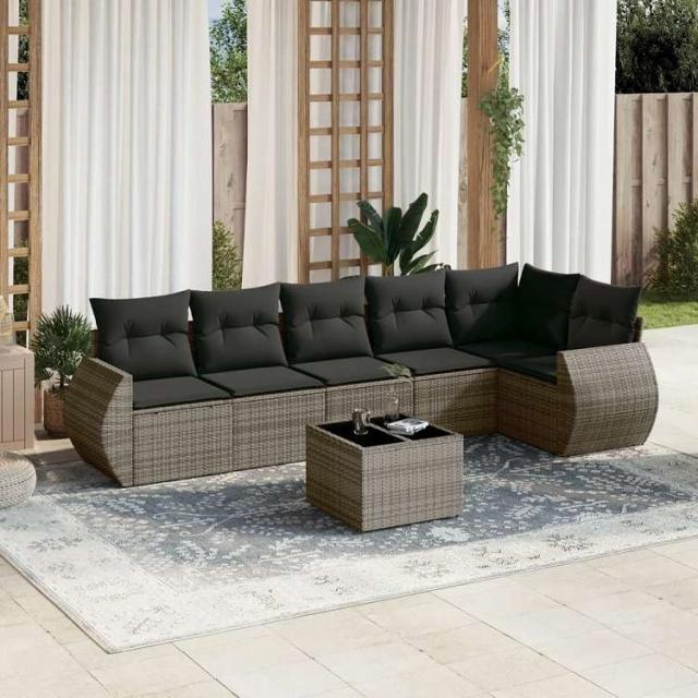 vidaXL ガーデンソファ7点セット クッション付き グレー ポリラタン家具 アウトドア家具 屋外家具セット(代引不可)【送料無料】