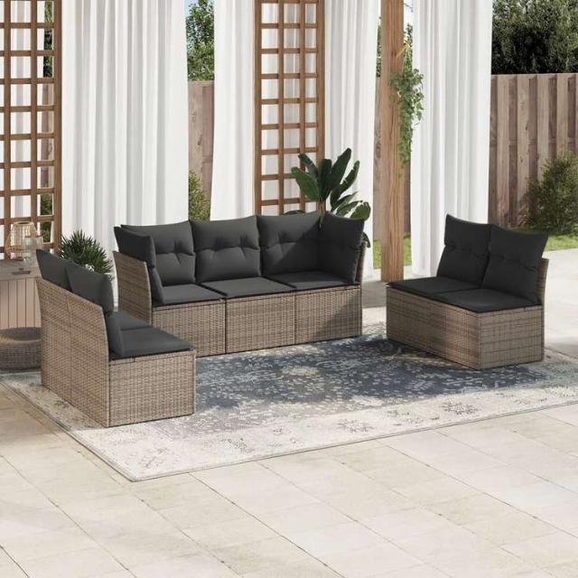 vidaXL ガーデンソファ7点セット クッション付き グレー ポリラタン家具 アウトドア家具 屋外家具セット(代引不可)【送料無料】