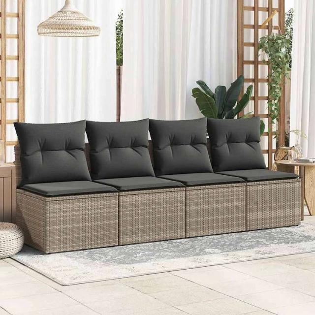 vidaXL ガーデンソファ2点セット クッション付き グレー ポリラタン アカシア家具 アウトドア家具 屋外家具セット(代引不可)【送料無料】