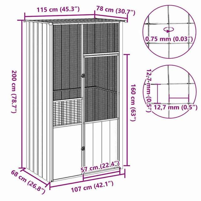 vidaXL バードケージ アントラシート 115x78x200 cm 亜鉛メッキ鋼Animals & Pet Supplies ペット用品 鳥用品 取りかご・スタンド(代引不可)【送料無料】