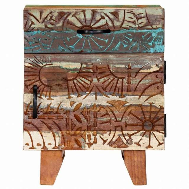 vidaXL 手彫り ベッドサイドキャビネット 40x30x50cm 無垢の再生木材家具 テーブル ベッドサイドテーブル(代引不可)【送料無料】