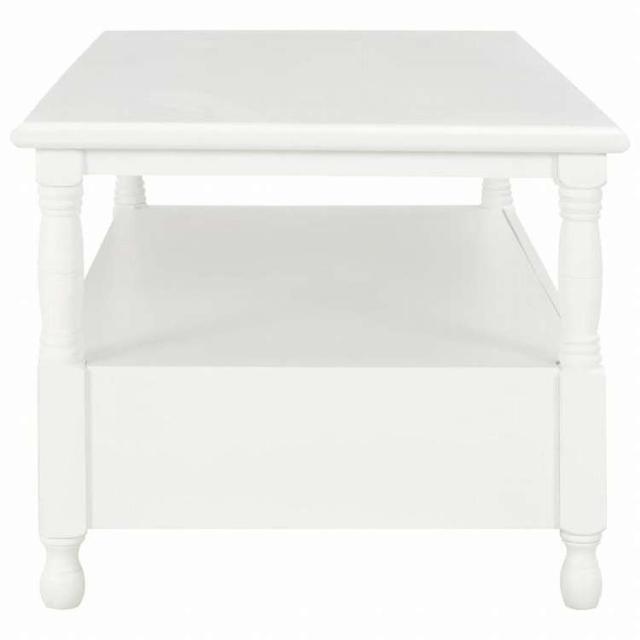 ■このスタイリッシュな木製のコーヒーテーブルで、エレガントなタッチを添えましょう。ホワイトカラーのラッカー仕上げが特徴です。このコーヒーテーブルは引き出し2つとオープン収納コンパートメントを1つ備えており、十分な収納スペースがあります。優れた職人の技が印象的で、リビングのインテリアをあっという間にアップグレードします。 飲み物や、その他ちょっと必要なものが置ける、しかも収納スペースもついている、そんなテーブルをお探しの方には、このコーヒーテーブルがぴったりです。引き出し2つとオープン収納コンパートメント1つを備えており、雑誌や本といったリビングスペースに必要なものが、すっきり収納できます。現代的なデザインが、お部屋の空間を素敵に演出します。MDF、無垢のパインウッドとユニークな桐ベニアで作られているから、年数問わずお使い頂けます。
