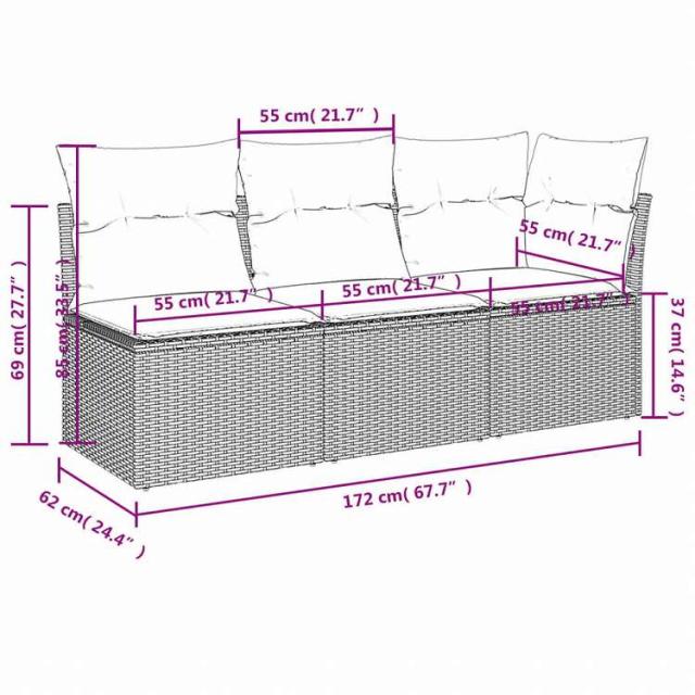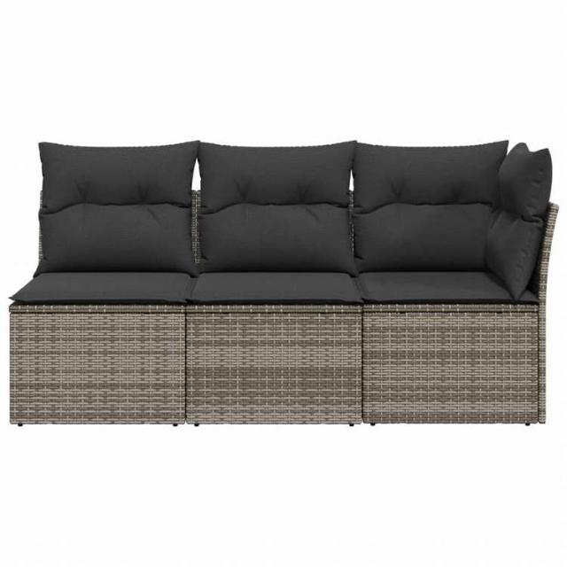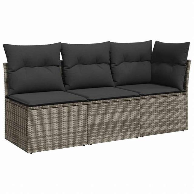 vidaXL ガーデンソファ クッション付 3人掛け グレー ポリラタン家具 アウトドア家具 屋外椅子 屋外ソファ(代引不可)【送料無料】