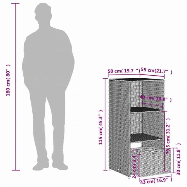 vidaXL ガーデン収納キャビネット 50x55x115 cm ポリラタン製 ブラック家具 アウトドア家具 屋外収納ボックス(代引不可)【送料無料】