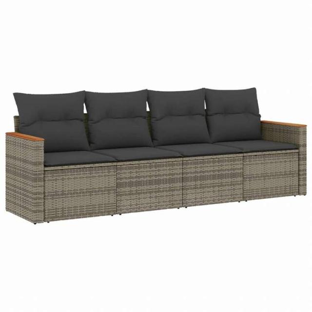 vidaXL ガーデンソファ4点セット クッション付き 灰色 ポリラタン製家具 アウトドア家具 屋外家具セット(代引不可)【送料無料】