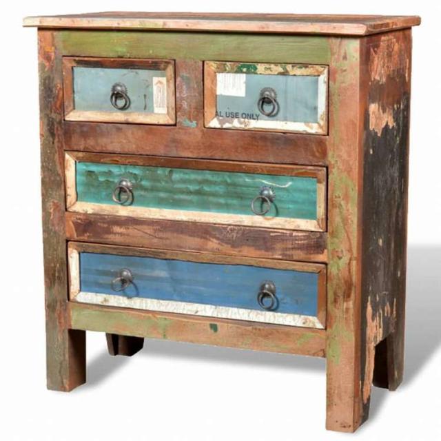 vidaXL 再生木製キャビネット 無垢材 引き出し4段家具 キャビネット&収納 ドレッサー(代引不可)【送料無料】