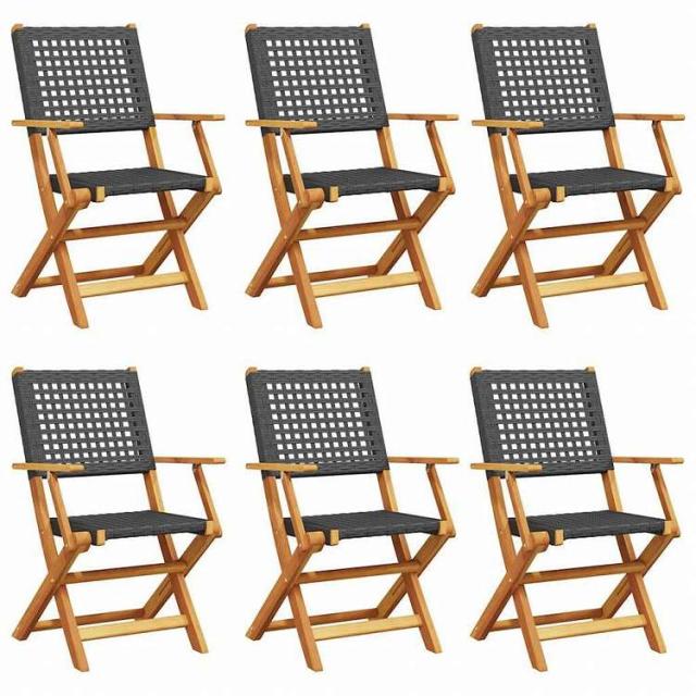 vidaXL 折りたたみガーデンチェア 6点 ブラック ポリラタン&無垢材家具 アウトドア家具 屋外椅子 アウトドアベンチチェア(代引不可)【送料無料】