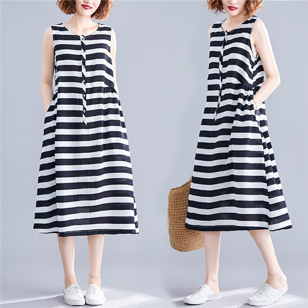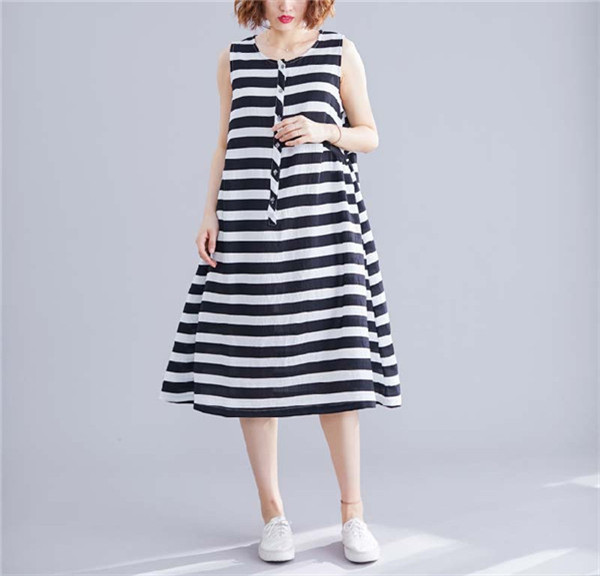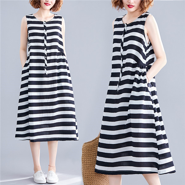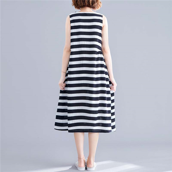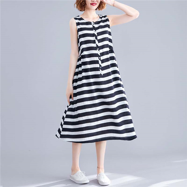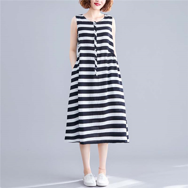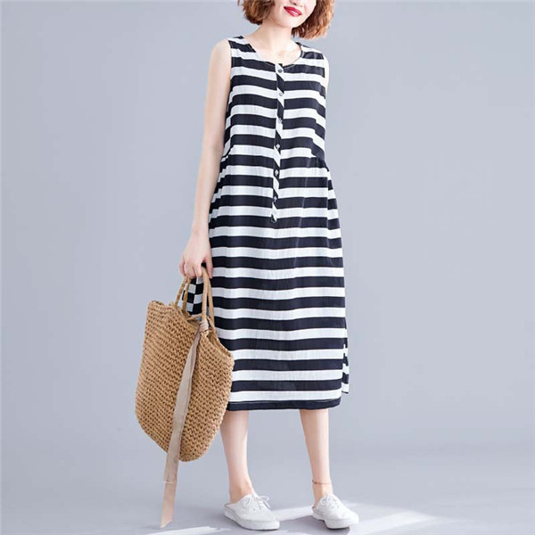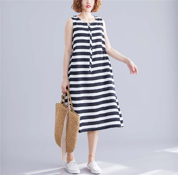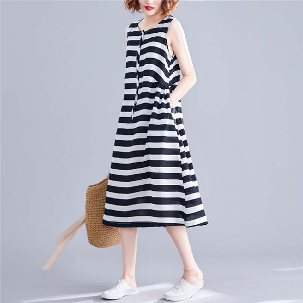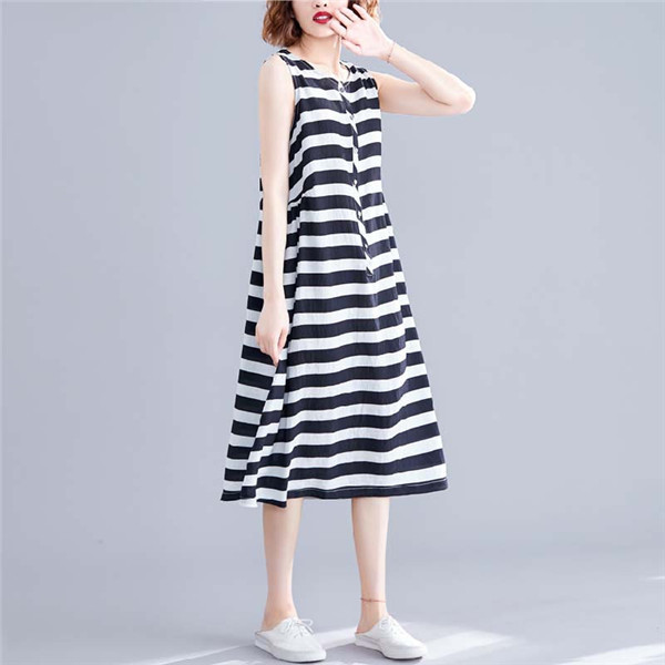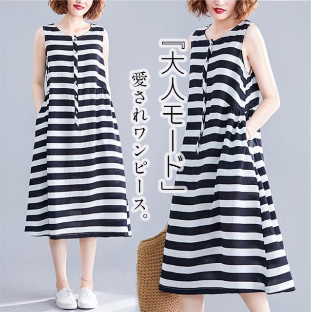 ワンピース ノースリーブ ボーダー柄 夏 ロングワンピース シャツワンピース マキシ ロング フレンチスリーブ フレアワンピース 袖なし カジュアル
