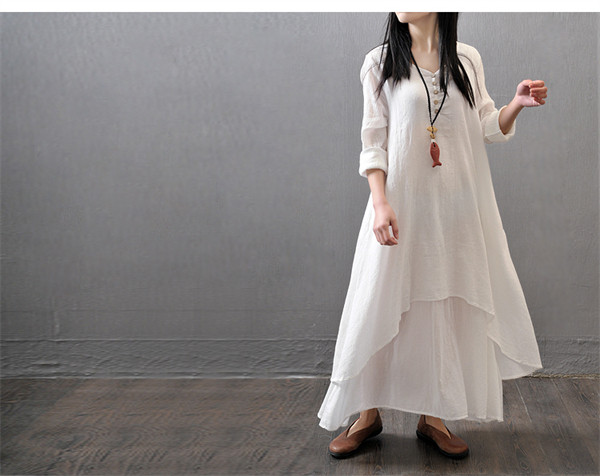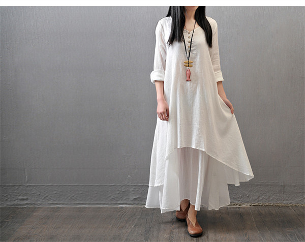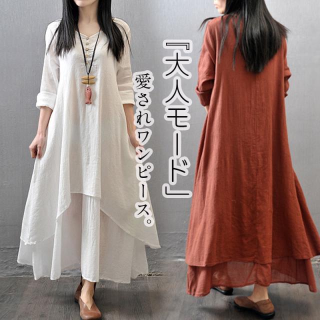 ワンピース レディース 5色 リネン コットン シンプル ナチュラル綿麻 ゆったりレトロ Aライン マキシワンピースロング 大きいサイズ 夏