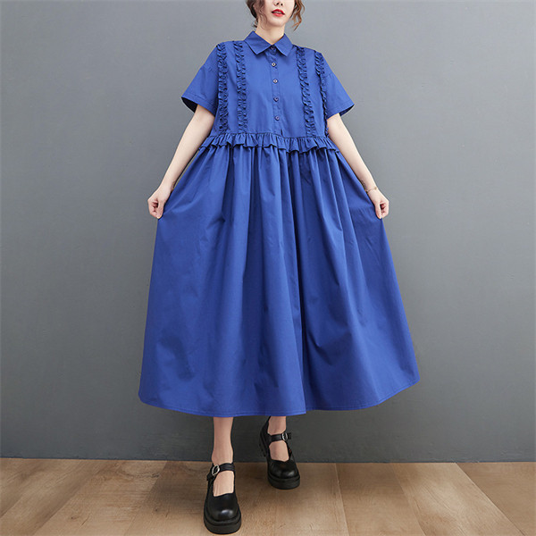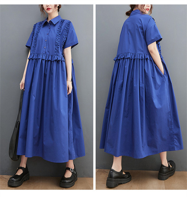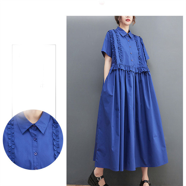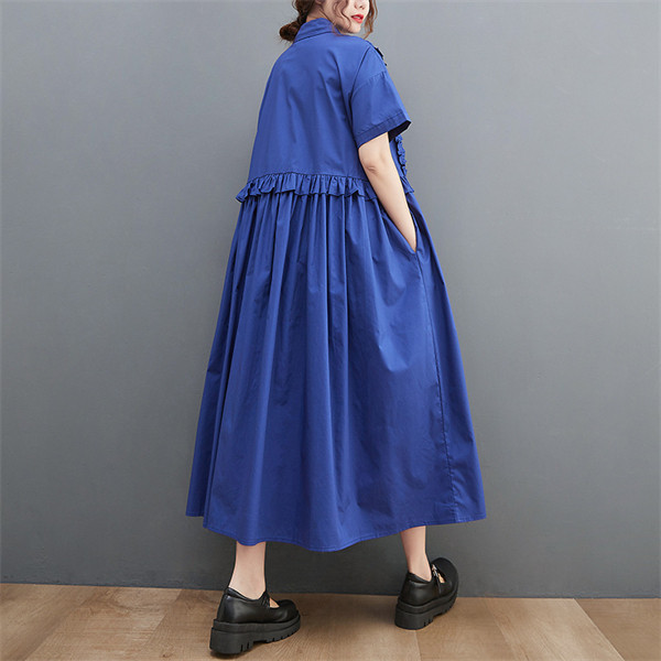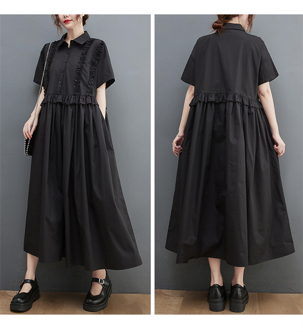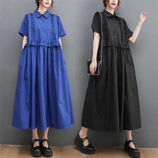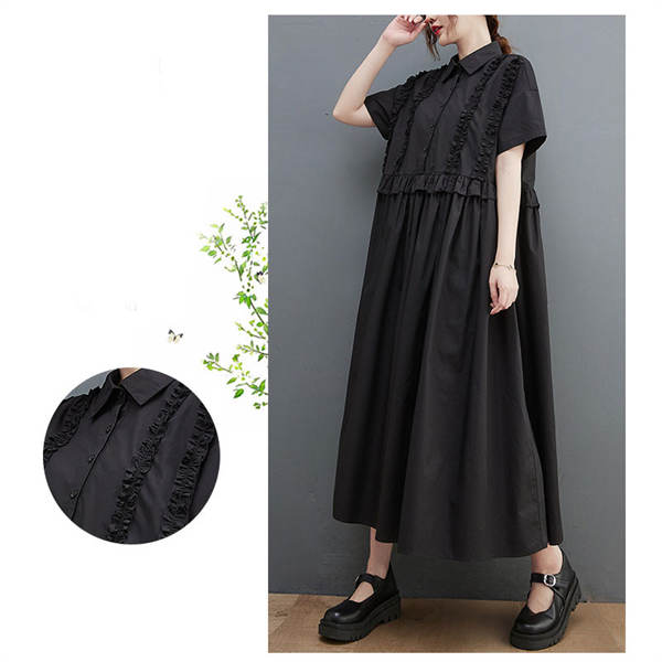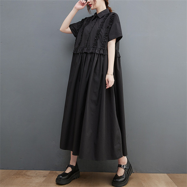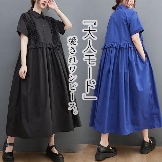 2022人気新品 シャツワンピース レディース ロング丈 ワンピース マキシワンピース 夏 ドッキングワンピース ブラック フリル 切り替え