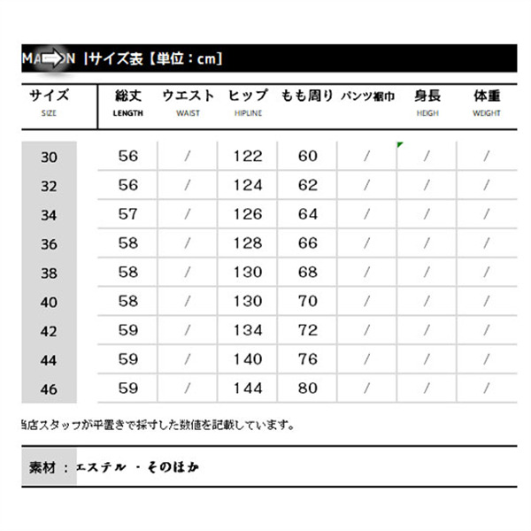 サイズ:/30/32/34/36/38/40/42/44/46