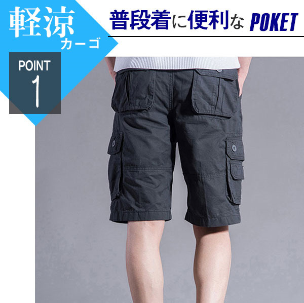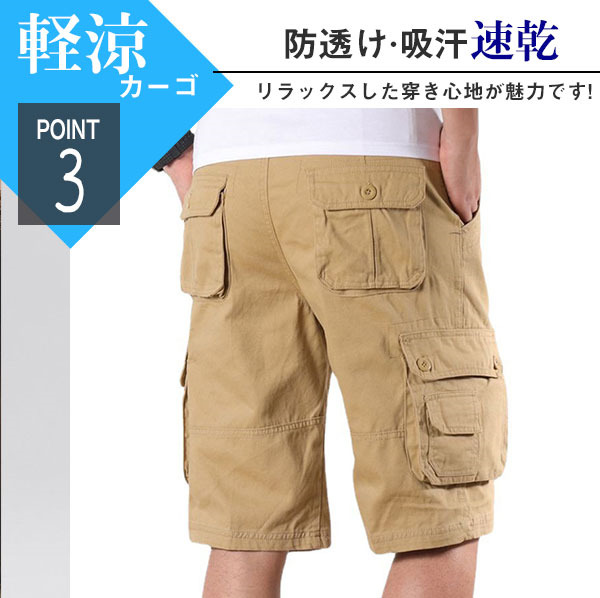 カーゴパンツ クロップドパンツ パンツ メンズ ハーフパンツ ポケット 膝丈 ドライ ズボン 速乾 接触冷感 アウトドア イージーパンツ 夏用