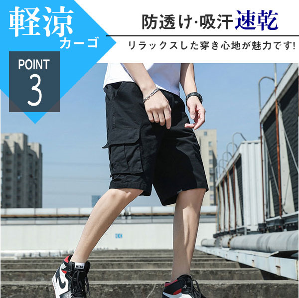 カーゴパンツ 迷彩 クロップドパンツ パンツ メンズ ハーフパンツ ポケット 膝丈 ドライ ズボン 速乾 接触冷感 アウトドア イージーパンツ 夏用