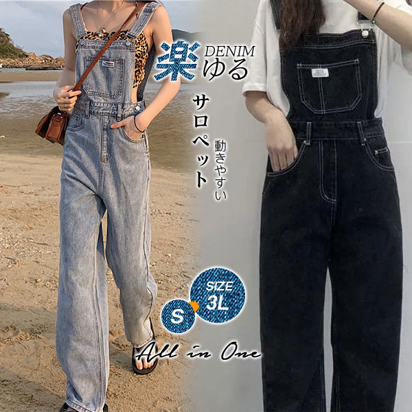 サロペット レディース パンツ オーバーオール 大人 大きめ カジュアル ゆったり シンプル アウトドア コットン 着痩せ カジュアル かわいい