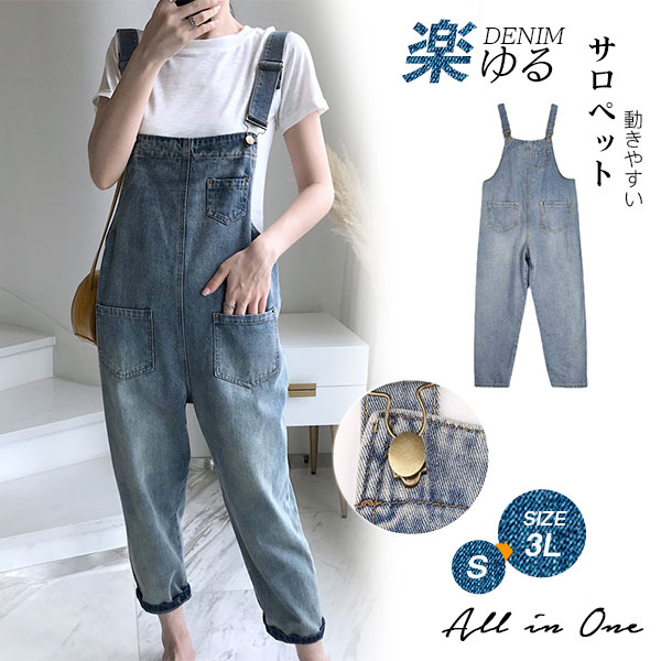 サロペット レディース 春秋 オーバーオール ワイドパンツ シンプル ロング丈 40代 50代 ゆったり ナチュラル 着痩せ きれいめ 大人 おしゃれ