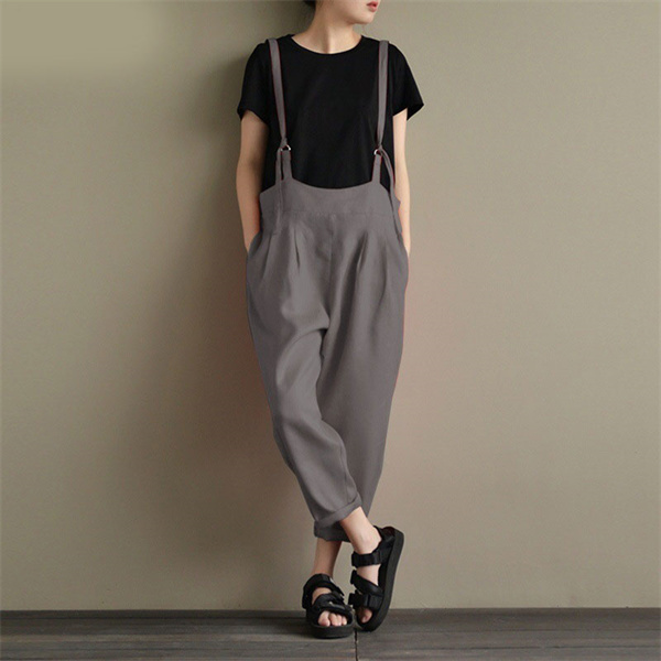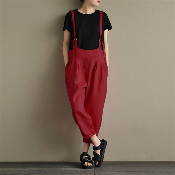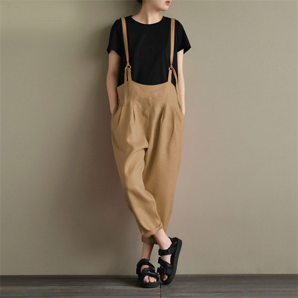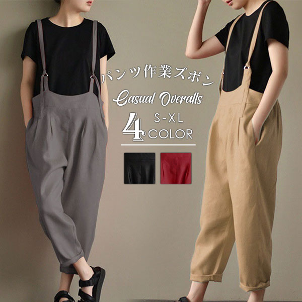デニムサロペット キャミ レディース 綿麻 デニム 春秋 オーバーオール ワイドパンツ シンプル ロング丈 40代 ゆったり ナチュラル 着痩せ