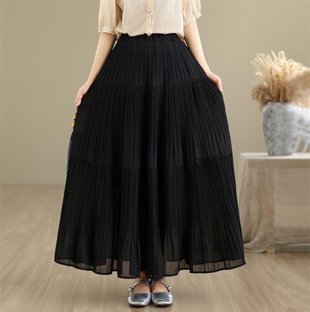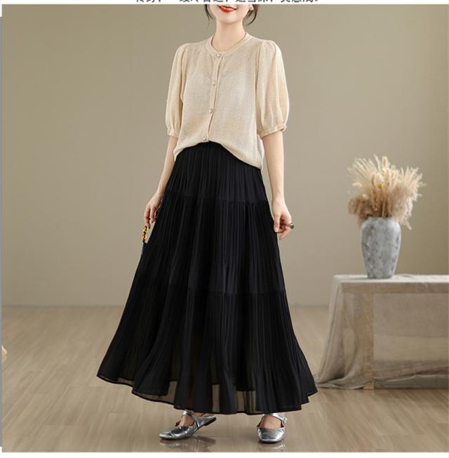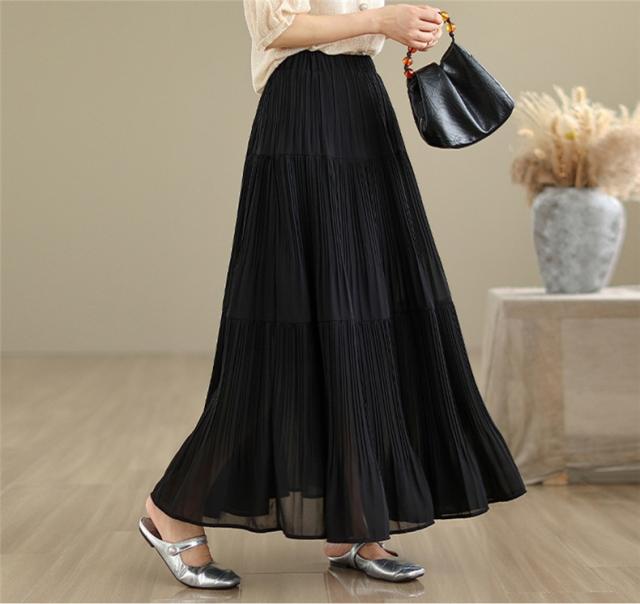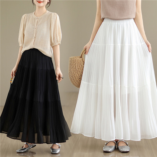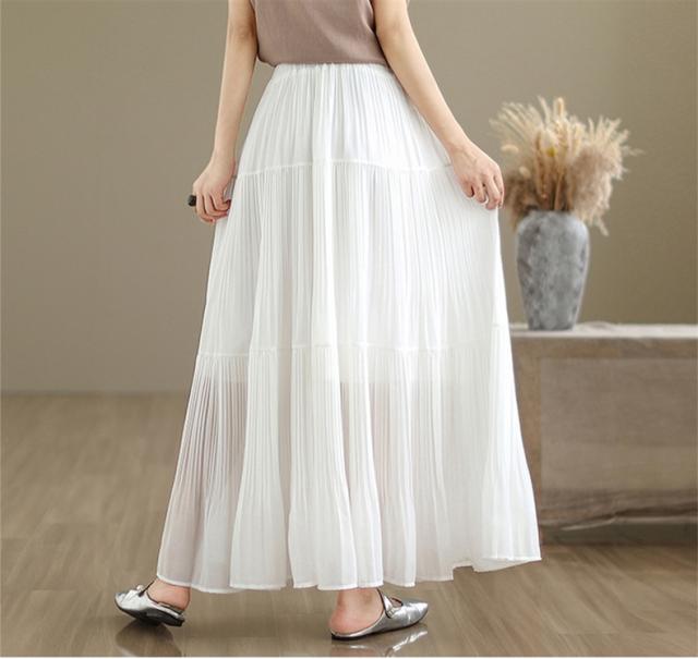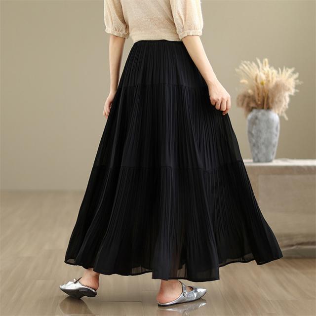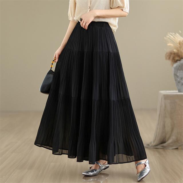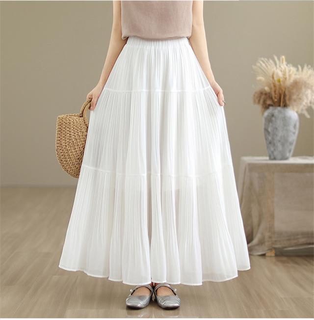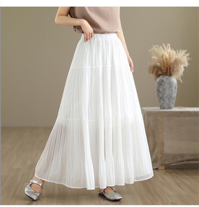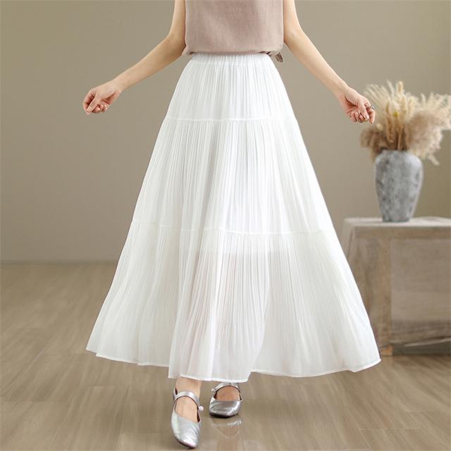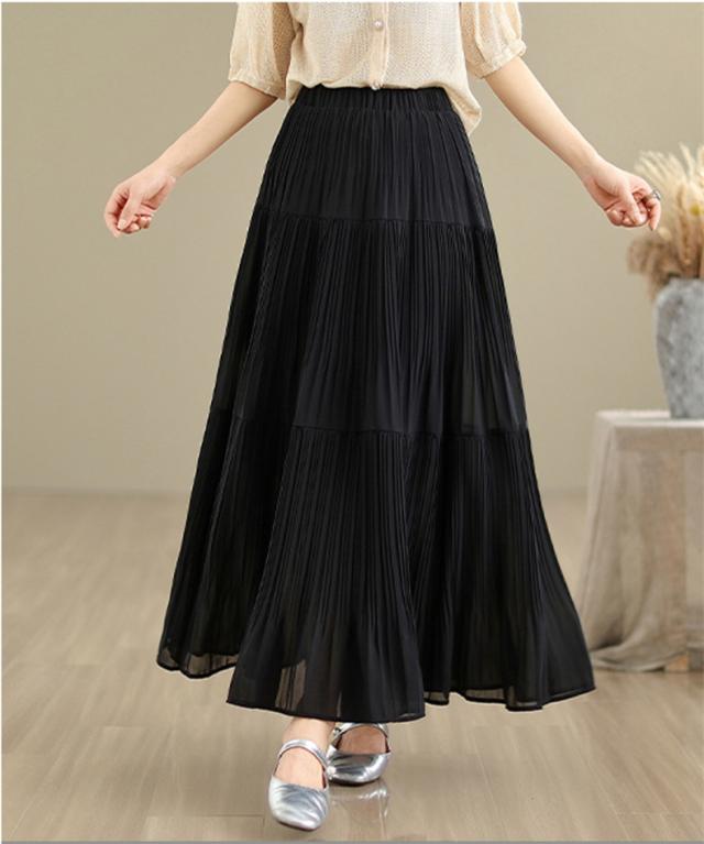 春夏 人気スカート プリーツ ロングスカート レディース ウェストゴム Aライン すっきりした印象 柔らかな色合い 軽やかな雰囲気 大人っぽく着こなせる