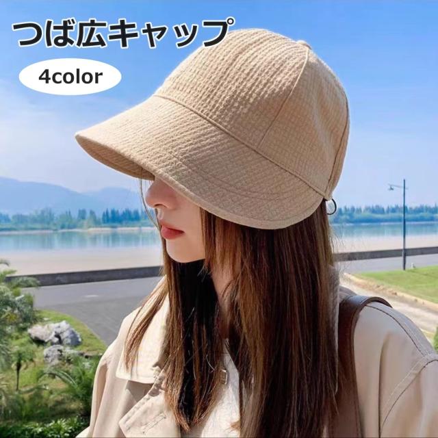 キャップ レディース 女性 つば広 帽子 ワッフル生地 無地 単色 シンプル カジュアル かわいい おしゃれ 日焼け防止 熱中症