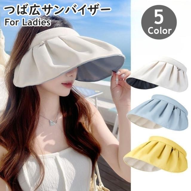 つば広サンバイザー レディース 女性 婦人 帽子 折りたたみ 丸める コンパクト カチューシャ ツバ広 幅広携帯 持ち運び 紫外