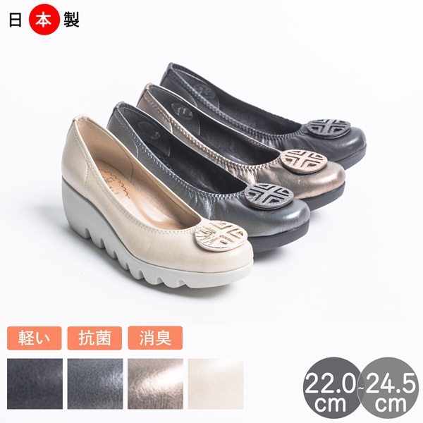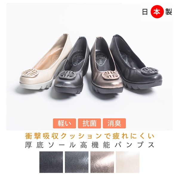 衝撃吸収クッションで疲れにくい、厚底ソール高機能パンプスです。