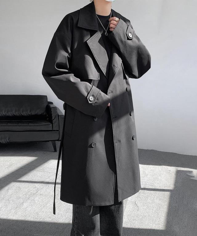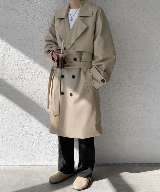 タイムレスな魅力を持つクラシックダブルトレンチコート。洗練されたシルエットとダブルブレストデザインが、大人の品格を引き立てる一枚。