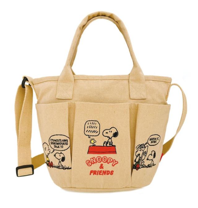 スヌーピー&フレンズの刺繍がキュートなバケツ型トート。