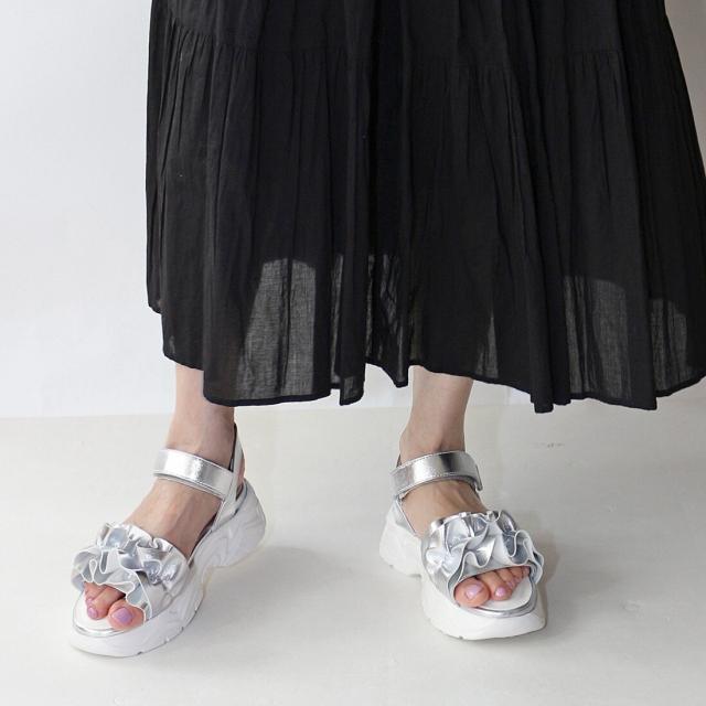 【25春夏新作】フリル厚底ベルクロスポーツサンダル