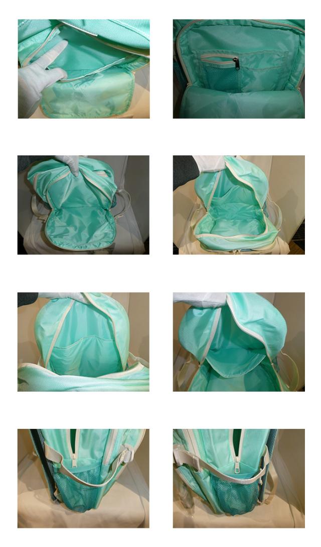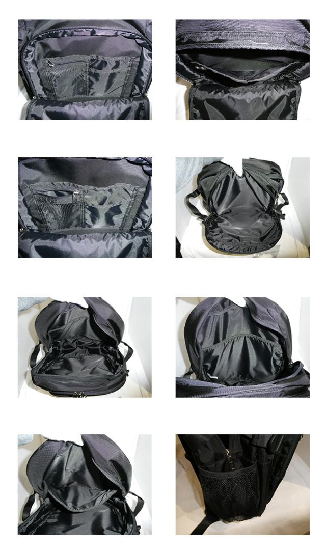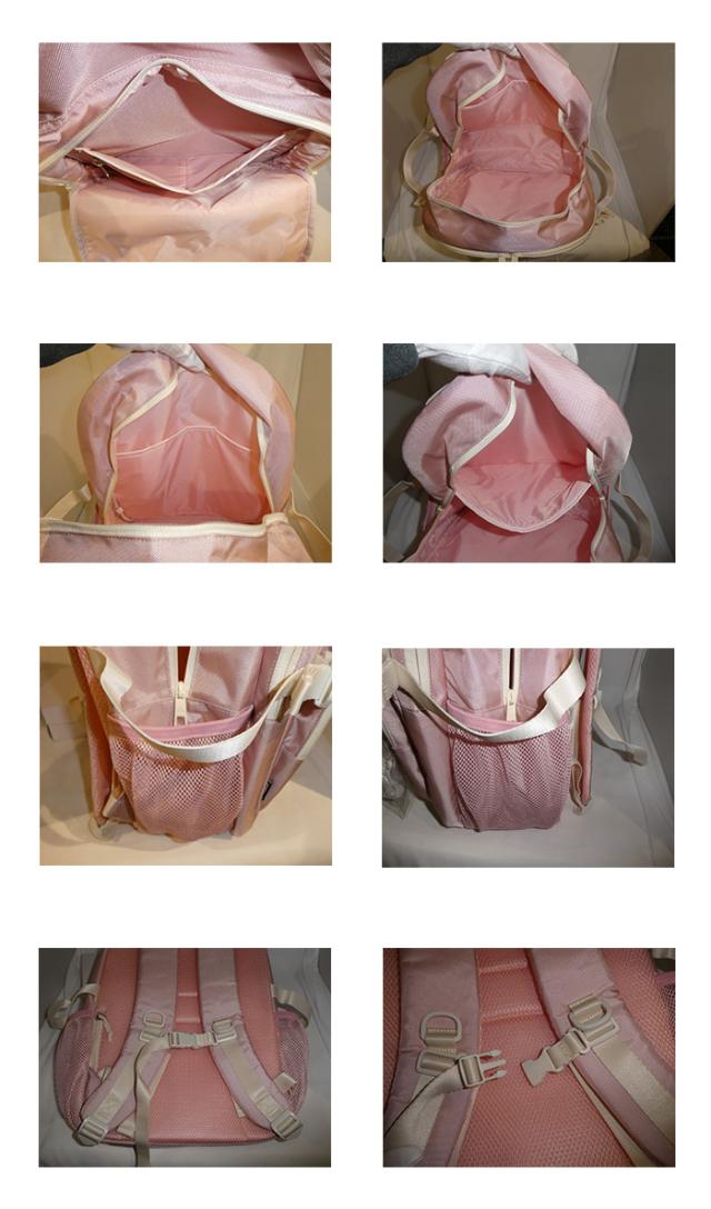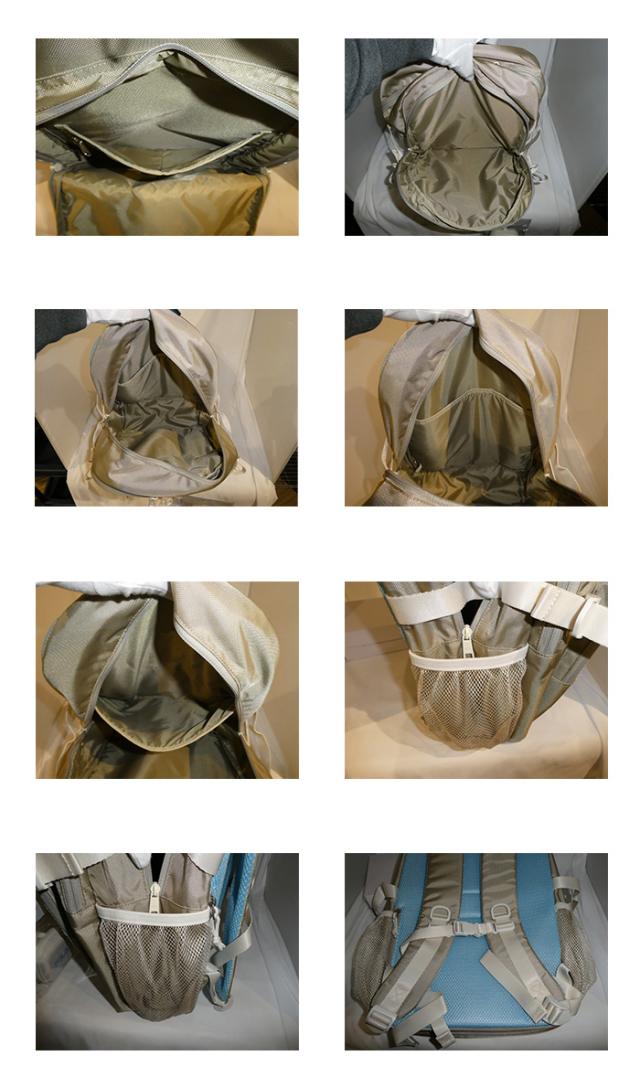 手前:マチ付きファスナーポケット×1(中に大小フリーポケット×2、メッシュファスナポケット×1)