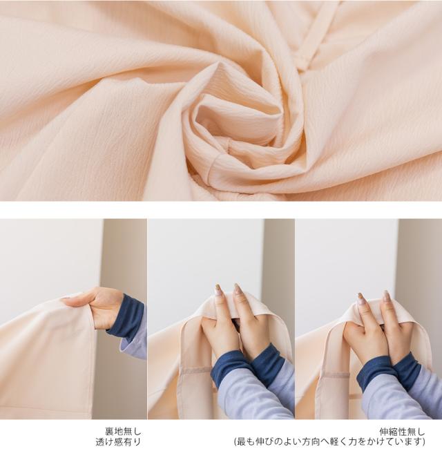 | 裏地無し、透け感わずかに有り、伸縮性無し |